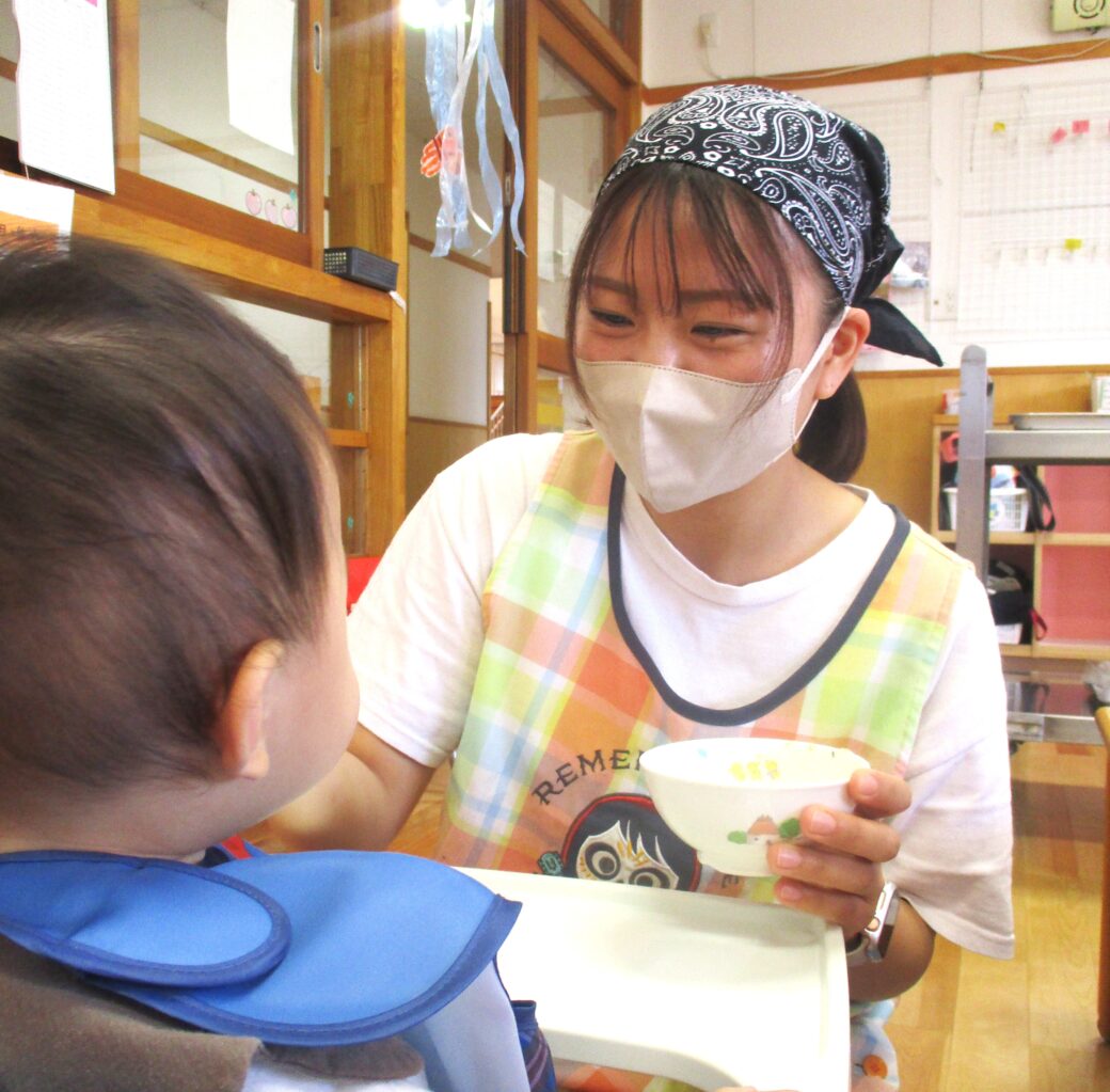 当園では、園内に給食室を完備しており、給食職員が「季節を感じられる献立」と「手作りおやつ」で楽しませてくれます。またイベントに合わせた特別メニューも豊富で、子どもたちのワクワクした表情が私たちを和ませてくれます。